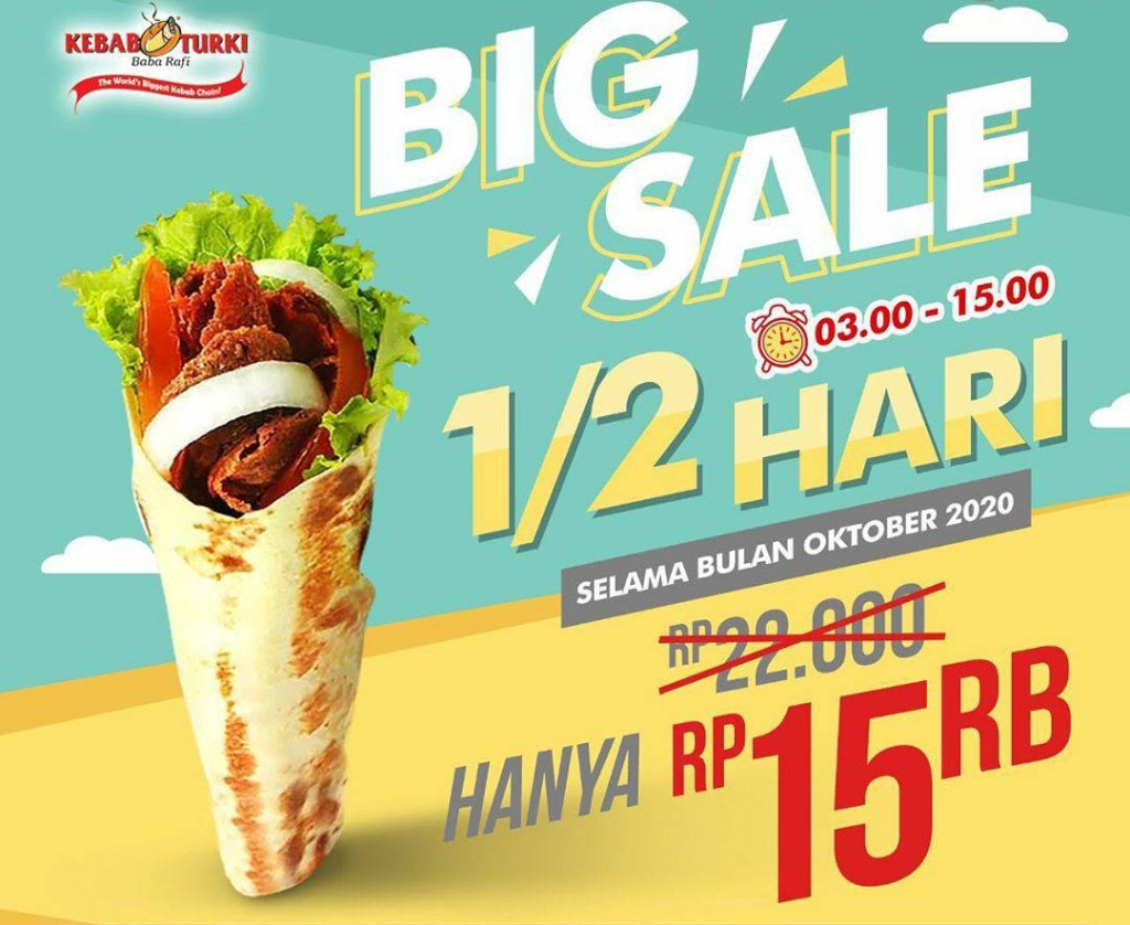 Ada kabar baik nih buat kebab lovers, sekarang ada big sale selama bulan Oktober harga dari Rp 22.000 turun menjadi Rp15.000 saja !!